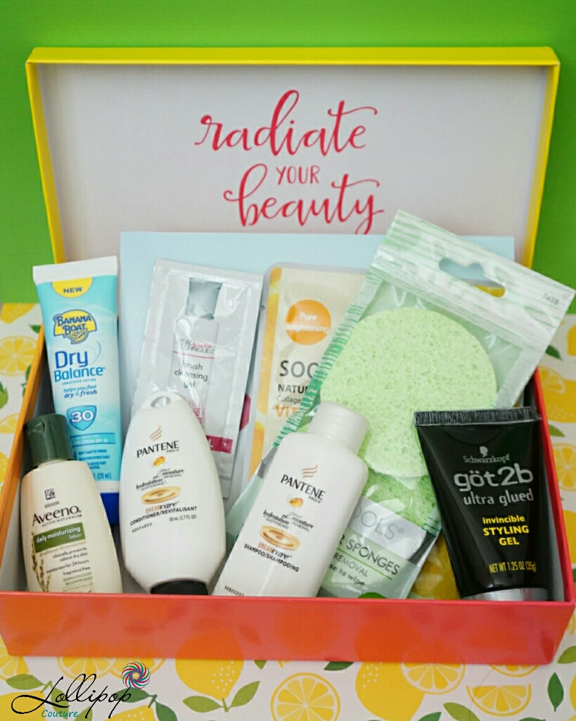 I was still lucky to get their summer box! Which means I'll be getting two more before the seasons are over. For the summer box I received 8 products; Banana Boat Sunscreen, Pantene shampoo and conditioner, Aveeno daily moisture, Got2b ultra glued, mask remover sponges, Soo AE face mask, and a brush cleansing gel. Below I'll share some info about the products, and a review.